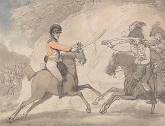 | Keywords: Thomas Rowlandson - Hungarian and Highland Broadsword Exercise - Google Art Project.jpg Inscribed in black ink lower center Cut two and Horses off side Protect New Guard Inscription _Signed_and_Dated Not signed not dated Not on View Watercolor with pen and gray and black ink over graphite; verso graphite on medium slightly textured blued white wove paper horses animals soldiers Hungarian horseback riders exercise hats uniforms military broadswords artillery genre subject special url_id wAE-Ndjl7g_kzA PD-old-100-1923 1827 Drawings and watercolours by Thomas Rowlandson Google Art Project works by Thomas Rowlandson Cavalry in art |