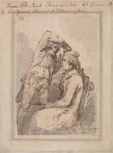 | Keywords: Thomas Rowlandson - Jack Bannister in his Dressing Room - Google Art Project.jpg Inscribed in pen in brown ink on support sheet upper center From Old Jack Bannister 65 Gowen St to his Young Friend Wm Henderson ; in black ink image sheet upper left TEL collectors stamp ; in dark gray ink on image sheet lower right Sketch'd from Mm Bannister Jun in his Dressing Room at Drury Lane- Dec 23-83-- ; verso in brown ink center right Wit be the Prologue which adorns his head and frame his final epilogue when dead ; in graphite center Long and brilliant be the prologue Long in coming too the Epilogue Inscription _Signed_and_Dated Not signed not dated Not on View Watercolor with pen and red-brown ink over graphite on medium moderately textured beige laid paper mounted on beige thick moderately textured laid paper with border with gray wash lines seated Bannister John 1760 “1836 actor profile actor standing dressing room portrait special url_id IQGNPAnF8o7n2Q PD-old-100-1923 1827 Drawings and watercolours by Thomas Rowlandson Google Art Project works by Thomas Rowlandson Hairdressing in art |