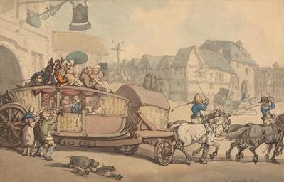 | Keywords: Thomas Rowlandson - The Paris Diligence - Google Art Project.jpg Inscribed in gray ink lower right T Rowlandson Inscription _Signed_and_Dated Not signed not dated Not on View Watercolor with pen and black gray and red-brown ink over graphite; verso graphite on medium slightly textured beige wove paper ladies riding crops horses animals pig piglets transportation soldiers monks beggars Grand Tour windows archways town buildings carriages cityscape crucifixes special url_id XgE-NZo1_W_K5Q PD-old-100-1923 1827 Drawings and watercolours by Thomas Rowlandson Google Art Project works by Thomas Rowlandson Paris in art Horse-drawn vehicles in Paris |