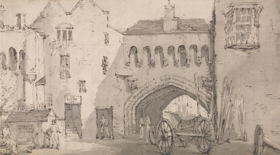 | Keywords: Thomas Rowlandson - Southhampton, the Watergate and Globe Inn - Google Art Project.jpg date London 1756 London 1827 Thomas male 2332358 Rowlandson British 1756 - 1827 /collection/yale-center-for-british-art/artwork/southhampton-the-watergate-and-globe-inn-thomas-rowlandson/2442098/ Thomas Rowlandson Artist /artist/thomas-rowlandson/4131603/ 4131603 /collection/yale-center-for-british-art/ Yale Center for British Art 2305845 http //britishart yale edu/ 2/23/2012 10 31 42 PM /collection/yale-center-for-british-art/artwork/southhampton-the-watergate-and-globe-inn-thomas-rowlandson/2442098/ 1772 undated arched shops lumber gate windows wheels village tree buildings cart wagon cityscape People Pen and gray-brown ink and wash over graphite with graphite grid lines on medium slightly textured beige wove paper 127 2442098 False 1827 3/24/2012 10 18 41 PM YCBA/lido-TMS-5607 http //collections britishart yale edu/vufind/Record/1669912 Yale Center for British Art Paul Mellon Collection drawing 1770 1830 Italy Creation w229 x h127 cm undated False 1 80918727915194 Item southhampton-the-watergate-and-globe-inn-thomas-rowlandson Southhampton the Watergate and Globe Inn s 229 <nowiki>Inscribed in pen and brown-black ink verso entire sheet We sup'd upon a crab which we brought from Steephill and went to Bed - Tuesday- The Angels family and ourselves - went out to fish for Whitings - but were unsuccessful we returned about five to dinner at our House - owing to the Cooks negligence we did not get our dinner till almost seven I paid for Fowls 0 3 0 greens 0 1 0 - shrimps everyday 1 8 the dinner consisted of venison a chicken pie from Rogers at Southampton --- after dinner we walked by moonlight found it delightfully pleasant - Wednesday- we all set out at nine o clock to fish at Hurst Poor Mrs W and my dear child were left behind owing to their fears of the water - we had a dashing passage to Hurst but when we arrived there had some hauls for fish and were successful enough to get sufficient for our dinner and some to bring home I paid 19 the Bill and 0 10 6 for the net and mens assistance we met Captain Terry at Hurst who invited us to come and see him --- we saluted him on our return this line is obscured by the mat</nowiki> Inscription _Signed_and_Dated Not signed not dated Not on view Pen and gray-brown ink and wash over graphite with graphite grid lines on medium slightly textured beige wove paper arched shops lumber gate windows wheels village tree buildings cart wagon cityscape People special url_id 4wEayGIBf4Kvqw PD-old-100-1923 1827 Drawings and watercolours by Thomas Rowlandson Google Art Project works by Thomas Rowlandson History of Southampton |
