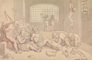 | Keywords: Thomas Rowlandson - Spanish Inquisition - Google Art Project.jpg Inscribed in pen and black ink lower right Spanish Inquisition ; verso in graphite upper right 2 Inscription _Signed_and_Dated Not signed not dated Not on View Watercolor with pen and brown red and gray ink over graphite on medium slightly textured beige wove paper beards Spanish inquisition prisoners men religion bars building materials chains windows jail chained bindings nudes genre subject historical subject torture special url_id zgGJyT04LDW0RQ PD-old-100-1923 1827 Drawings and watercolours by Thomas Rowlandson Google Art Project works by Thomas Rowlandson 1827 drawings Spanish Inquisition Prisons in art |