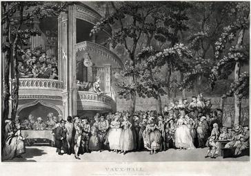 | Keywords: Thomas Rowlandson - Vaux-Hall - Dr. Johnson, Oliver Goldsmith, Mary Robinson, et al.jpg LargeImage In the supper-box on the left we see reading left to right James Boswell Mrs Thrale who appears twice Dr Johnson and Oliver Goldsmith The ˜macaroni ™ Captain Edward Topham scandalmonger to The World is quizzing Georgiana Duchess of Devonshire and her sister Lady Duncannon Sheridan ™s Lady Bessborough watched by a naval figure with an eye patch and a wooden leg not included in the Mellon version always called Admiral Paisley but Paisley did not lose his leg and eye until 1st June 1794 so it cannot be him To the left of him a young girl a young boy in the Mellon version holding the hand of a man who could be the comic actor William Parsons or Rowlandson ™s friend Jack Bannister Peering at the two ladies from behind a tree is a figure traditionally though improbably identified as Sir Henry Bate-Dudley the ˜Fighting Parson ™ editor of the Morning Herald; he is more likely to be Thomas Tyers son of Jonathan Tyers the great entrepreneur and proprietor of Vauxhall Gardens from 1729 until 1767 who stands next to the Scotsman James Perry editor of the London Gazette The couple on their right could well be the artist himself and his current girlfriend and to the right of them stands the actress Mary ˜Perdita ™ Robinson with her husband on her right and the Prince of Wales later George IV on her left Looking up at the singer the couple on the extreme left have been identified as the actress Miss Hartley in company with one of her many admirers possibly Mr Colman but suggested by their position apart from the crowd they could also be members of the Tyers family most likely Jonathan jr and his wife Margaret or their son-in-law Bryant Barrett and his wife Elizabeth The large lady seated at the table on the right is Mrs Barry the old Madam of Sutton Street Soho with two of her customers and one of her girls In the orchestra we can see Jacob Nelson the tympanist who had played at Vauxhall since 1735 and died there after fifty years' performing Mr Fisher on oboe probably Hezekiah Cantelo and Mr Sargent on trumpet and Barthélemon the leader who retired in 1783 James Hook the composer organist musical director and prolific song-writer may be seen between Barthelemon and the singer the 38-year-old Frederika Weichsell who was Rowlandson ™s next-door neighbour in Church Street and the mother of Mrs Elizabeth Billington Elizabeth had just aged 18 married James Billington a double-bass player in 1783 much against her parents ™ wishes A number of those present in this scene had already died by the time Rowlandson produced the painting and the affaire between the Prince and Perdita Robinson was already over Although there is no direct evidence for this it seems likely because of the dating and because of the central position of the singer that the painting was created by Rowlandson as a retirement gift for Frederika Weichsel whether from him personally or specially commissioned by the proprietors of the gardens ppmsca 05671 Published by J R Smith No 83 Oxford Street London 1785-06-28 Creator Thomas Rowlandson Aquatinto by Francis Jukes 1745-1812 Engraved by Robert Pollard 1755-1838 Initial restoration by User Adam Cuerden Revised version extensive dirt and stain removal perspective crop histogram adjusted and colors balanced <gallery> File Vauxhall Gardens by Thomas Rowlandson jpg File Vauxhall - Dr Johnson Oliver Goldsmith Mary Robinson et al jpg </gallery> Assessments Assessments c 2010 1 Vauxhall Gardens 1 High society in late 18th century London 00 12 15 April 2010 UTC 03193u Vauxhall Johnson Mary Robinson and so on 6 jpg ImageNote 1 3224 2579 488 784 8799 6190 2 Mrs Fredericka Weichsel ImageNoteEnd 1 ImageNote 2 1189 4079 447 571 8799 6190 2 Samuel Johnson ImageNoteEnd 2 ImageNote 3 701 4127 344 426 8799 6190 2 James Boswell ImageNoteEnd 3 ImageNote 4 1822 4058 220 351 8799 6190 2 Oliver Goldsmith ImageNoteEnd 4 ImageNote 6 3856 3948 852 708 8799 6190 2 Georgiana Cavendish Duchess of Devonshire and her sister Henrietta Ponsonby Countess of Bessborough ImageNoteEnd 6 PD-old-100 Engravings by Thomas Rowlandson Francis Jukes Robert Pollard engraver Vauxhall Gardens by Thomas Rowlandson Samuel Johnson James Boswell Oliver Goldsmith George IV of the United Kingdom Henrietta Countess of Bessborough Georgiana Cavendish Duchess of Devonshire Fredericka Weichsel Mary Robinson poet 1785 engravings 1785 in England Aquatint prints of gardens Fashion in 1785 Female vocalists in art Music scores in art Featured pictures from the Library of Congress |