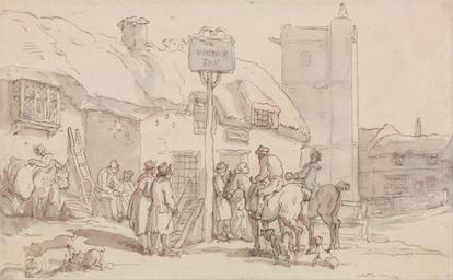 | Keywords: Thomas Rowlandson - The Woolpack Inn - Google Art Project.jpg No inscription Inscription _Marks watermark letter w and number 18 underneath Inscription _Signed_and_Dated Not signed not dated Not on View Pen and red-brown and gray ink with wash and graphite on medium slightly textured cream wove paper dogs animals donkey horses animals pigs piglets people chimney architectural element windows inn building ladders genre subject sign special url_id DQGu1VgsCFMo7A PD-old-100-1923 1827 Drawings and watercolours by Thomas Rowlandson Google Art Project works by Thomas Rowlandson Inns in art |