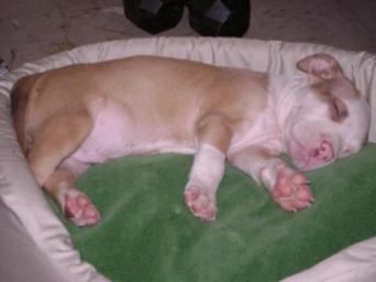 | Keywords: Thor the pit bull terrier, age 3 weeks.jpg en American Pit Bull Terrier asleep in his bed at 3 weeks own Edwin Luciano 2008-03-03 American Pit Bull Terrier puppies Two to three weeks old puppies Dog beds Sleeping puppies Lying dogs sideways |