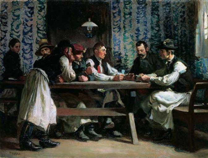 | Keywords: Thorma The Card Players 1904.jpg Artwork Creator János Thorma 1904 Oil on canvas Size cm 177 132 Institution Hungarian National Gallery object history credit line bottom left THORMA accession number FK 1929 Bay Miklós “ Boros Judit “ Murádin JenÅ‘ Thorma Budapest Körmendi Galéria 1997 ISBN 963-048-061-1 http //vmek oszk hu/07100/07196 Electronic version pic p 58 info p 95 PD-old-70 Paintings by János Thorma in the Hungarian National Gallery 1904 paintings in Hungary Afternoon in art |