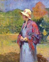 | Keywords: Thorma Woman with rosy Shawl.jpg Artwork Creator János Thorma Oil on canvas Size cm 80 100 5 Private collection object history credit line bottom left THORMA accession number http //www viragjuditgaleria hu/ Virág Judit Galéria http //viragjuditgaleria hu/en/item/5317/ Info http //viragjuditgaleria hu/pics/paintings/thorma_janos-no_rozsas_kendovel_ 28kalapos_holgy_napsutesben 29-28_167 jpg Pic PD-old-70 Paintings by János Thorma in private collections | ||||