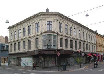 Keywords: Thorvald Meyers gate 59.jpg 86003 Halléngården Thorvald Meyers gate 59 Oslo Erected ca 1880 The corner rebuilt in functionalist style 1931 by architect Ole Sverre Own 2006-09-20 User Mahlum Halléngården