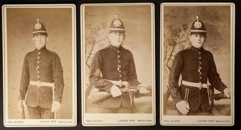 | Keywords: photo border According to spartacus-educational.com/DSindex.htm#h the business was not '& son' until 1887, but I would have estimated these to have been a little earlier. Police uniforms certainly not my expertise though. The fact that the 'Lewes and' is a stamp that has been added to the cards may help with dating. According to spartacus-educational.com/DSindex.htm#h the business was not '& son' until 1887, but I would have estimated these to have been a little earlier. Police uniforms certainly not my expertise though. The fact that the 'Lewes and' is a stamp that has been added to the cards may help with dating. |