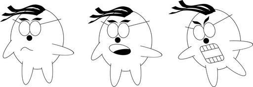 Keywords: three faces creatures angry aliens characters yelling emotions expressions white black group people funny specs spectacles