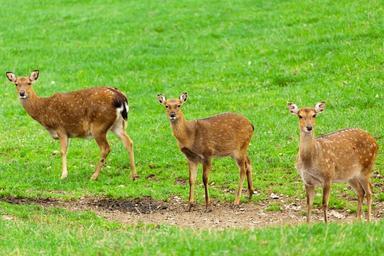 Keywords: animal three deers brown deer field grass green mammal meadow park female wild wildlife