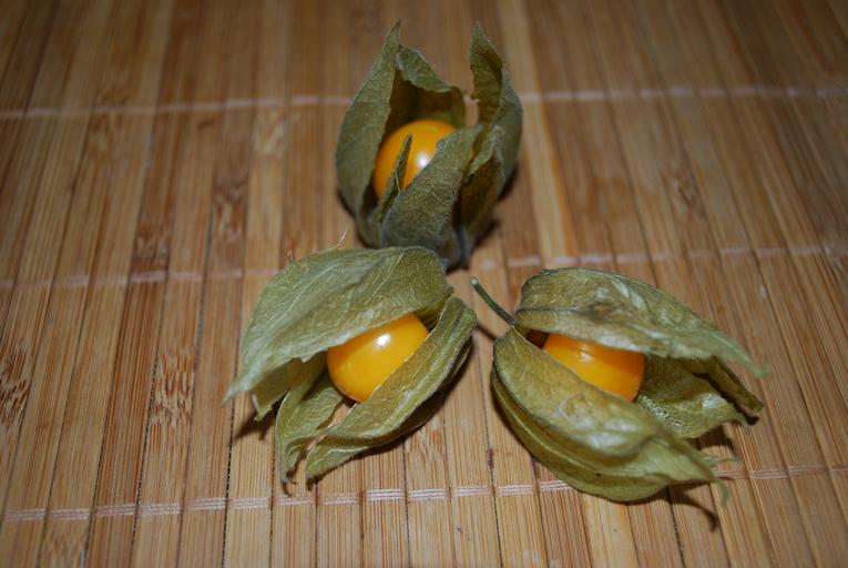 Keywords: three opened physalis fruit orange green healthy lifestyle food fresh eat