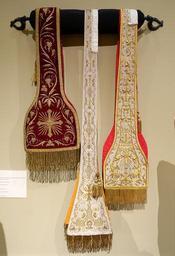 | Keywords: Three Preaching Stoles, left worn by Msgr John J. Prendergast, 19th or 20th century, center and right presented to Archbishop Patrick W. Riordan, 1908 - Saint Ignatius Church, San Francisco, CA - DSC02608.JPG en Exhibit in Saint Ignatius Church San Francisco California USA Photography was permitted without restriction 2015-05-14 17 00 16 own Daderot other versions cc-zero Exhibits in Saint Ignatius Church San Francisco Uploaded with UploadWizard Stoles | ||||