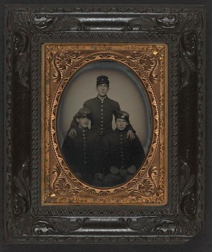| Keywords: library of congress libraryofcongress dc:identifier=http://hdl.loc.gov/loc.pnp/ppmsca.27542 dc:identifier=httphdllocgovlocpnpppmsca27542 xmlns:dc=http://purl.org/dc/elements/1.1/ xmlns:dc=httppurlorgdcelements11 u.s. civil war uscivilwar american civil war americancivilwar the civil war thecivilwar civil war civilwar war between the states warbetweenthestates united states of america unitedstatesofamerica u.s.a. usa the union theunion union the north thenorth yankee yankees soldier soldiers round photo border picture frame [Three unidentified soldiers in Union uniforms and Company E, 8th Regiment forage caps] [between 1861 and 1865] 1 photograph : quarter-plate ambrotype, hand-colored ; 16.5 x 14.0 cm (frame) Notes: Title devised by Library staff. Case: Berg, no. 7-23. Gift; Tom Liljenquist; 2010; (DLC/PP-2010:105). Subjects: United States.--Army--People--1860-1870. Soldiers--Union--1860-1870. Military uniforms--Union--1860-1870. United States--History--Civil War, 1861-1865--Military personnel--Union. Format: Group portraits--1860-1870. Portrait photographs--1860-1870. Ambrotypes--Hand-colored--1860-1870. Rights Info: No known restrictions on publication. Repository: Library of Congress, Prints and Photographs Division, Washington, D.C. 20540 USA, hdl.loc.gov/loc.pnp/pp.print Part Of: Ambrotype/Tintype filing series (Library of Congress) (DLC) 2010650518 Liljenquist Family collection (Library of Congress) (DLC) 2010650519 More information about this collection is available at hdl.loc.gov/loc.pnp/pp.lilj Persistent URL: hdl.loc.gov/loc.pnp/ppmsca.27542 Call Number: AMB/TIN no. 5035 [Three unidentified soldiers in Union uniforms and Company E, 8th Regiment forage caps] [between 1861 and 1865] 1 photograph : quarter-plate ambrotype, hand-colored ; 16.5 x 14.0 cm (frame) Notes: Title devised by Library staff. Case: Berg, no. 7-23. Gift; Tom Liljenquist; 2010; (DLC/PP-2010:105). Subjects: United States.--Army--People--1860-1870. Soldiers--Union--1860-1870. Military uniforms--Union--1860-1870. United States--History--Civil War, 1861-1865--Military personnel--Union. Format: Group portraits--1860-1870. Portrait photographs--1860-1870. Ambrotypes--Hand-colored--1860-1870. Rights Info: No known restrictions on publication. Repository: Library of Congress, Prints and Photographs Division, Washington, D.C. 20540 USA, hdl.loc.gov/loc.pnp/pp.print Part Of: Ambrotype/Tintype filing series (Library of Congress) (DLC) 2010650518 Liljenquist Family collection (Library of Congress) (DLC) 2010650519 More information about this collection is available at hdl.loc.gov/loc.pnp/pp.lilj Persistent URL: hdl.loc.gov/loc.pnp/ppmsca.27542 Call Number: AMB/TIN no. 5035 |