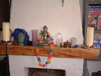 Keywords: Thuis-Altaar.jpg Home Altar own 2003-12-10 Shanti Frigge Hereby I give permission to use this photo anyway you like but mention my name Fireplaces Statues of the Buddha Household shrines
