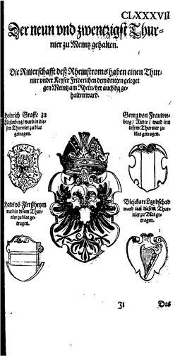 | Keywords: Thurnierbuch (Rüxner) 383.png 382 384 Coats of arms of Flersheim family Coats of arms of Fraunberg family Coats of arms of Fürstenberg family Coats of arms of Landschad von Steinach family Coats of arms of Germany to be classified ImageNote 1 68 1349 342 478 1810 3410 2 Coat of arms of Fürstenberg family ImageNoteEnd 1 ImageNote 2 1195 2186 393 467 1810 3410 2 Coat of arms of Landschad von Steinach family ImageNoteEnd 2 ImageNote 3 1207 1338 387 478 1810 3410 2 Coat of arms of Fraunberg family ImageNoteEnd 3 ImageNote 4 51 2203 376 473 1810 3410 2 Coat of arms of Flersheim family ImageNoteEnd 4 |