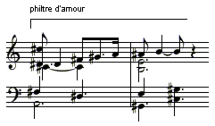 Keywords: Ti philtreamour.png This image was copied from wikipedia fr The original description was Copyright Cette image a été créée par Zerioughfe avec MusiXTeX le package de LaTeX qui permet d'écrire de la musique Elle est donc libre de droits Zerioughfe Tristan et Isolde - Motif du philtre d'amour loveless Tristan und Isolde Wagner Sheet music of Richard Wagner |