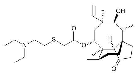 Keywords: Tiamulin skeletal.svg tiamulin own Anypodetos 2009-11-07 BKchem 001 -check Antibiotics Diterpenes Carboxylate esters Tertiary amines