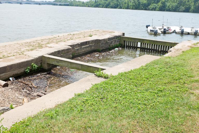 | Keywords: Tidewater lock, downstream (outlet) gate pocket detail.jpg en Tidewater lock on Chesapeake and Ohio Canal detail of gate pocket downstream Potomac River and Roosevelt Bridge are in the background own Bonnachoven 38 899958 -77 057761 Chesapeake Ohio Canal National Historical Park Potomac River Cc-zero |