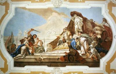 | Keywords: Tiepolo, Giovanni Battista - The Judgment of Solomon - 1726 - 1729.jpg Artwork Giovanni Battista Tiepolo creator Giovanni Battista Tiepolo The Judgment of Solomon 1726 - 1729 oil canvas irregular Palazzo Arcivescovile Palazzo Patriarcale<sup>according to WGA</sup> Udine Italy http //www artbible info/art/large/475 html Other versions PD-old-100 See also <gallery> File Giovanni Battista Tiepolo 061 jpg </gallery> Palazzo Arcivescovile Udine - Sala rossa Judgement of Solomon 1720s frescos 18th-century paintings of Old Testament Uploads by Mattes from external sources |