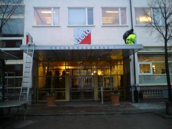 | Keywords: Tieto New Logo.JPG en Tieto's new logo on a sign that's beeing mounted outside one of theirs offices i Kista Stockholm Sweden sv Tietos fd TietoEnator nya skylt under montering vid deras kontor i Kista Stockholm own Markmc 2008-12-04 Buildings in Kista Office buildings in Stockholm Companies of Sweden |