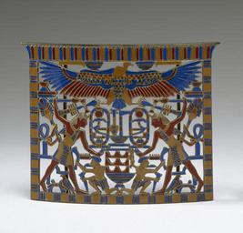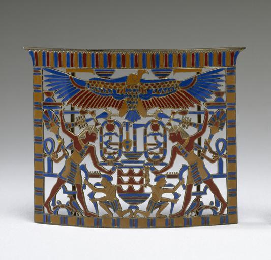 | Keywords: Tiffany and Company - Egyptianizing Brooch - Walters 571482.jpg In 1894 J de Morgan excavated several magnificent ancient pectorals from the tomb of Princess Mereret daughter of Sesostris III in Dahshur Egypt Soon after this discovery this faithful replica was made Unlike many Egyptianizing pieces this example copies the details of the original without major errors or changes; only the size and material are slightly varied silver and multicolored enamels replaced gold carnelian and faience The brooch in the form of a kiosk gives the names of the pharaohs Sesostris III and Amenemhet III from the middle of the 12th Dynasty 19th century BC Below the wings of a protective vulture the pharaohs are depicted as humans slaying their enemies early Other date century 20 silver gilt enamel cm 7 46 9 21 accession number 57 1482 8887 Tiffany Co New York Henry Walters Baltimore by purchase Walters Art Museum Henry Walters Acquired by Henry Walters Bedazzled 5 000 Years of Jewelry from the Walters Art Museum Frist Center for the Visual Arts Nashville; The John and Mable Ringling Museum of Art Sarasota; The Walters Art Museum Baltimore 2006-2009 Bedazzled 5 000 Years of Jewelry El Paso Museum of Art El Paso 2010 Jewelry - Ancient to Modern The Walters Art Gallery Baltimore 1979-1980 The Sphinx and the Lotus The Egyptian Movement in American Decorative Arts 1865-1935 Hudson River Museum of Westchester Yonkers 1990 place of origin New York USA Walters Art Museum license Jewellery in the Walters Art Museum Tiffany Co Egyptian revival art Ancient Egypt replicas |