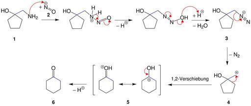 Keywords: Tiffeneau ring expansion mech-Seite001.svg en Mechanism of the Tiffeneau Ring Expansion de Mechanismus der Tiffeneau-Ringerweiterung own бе еста 06 01 14 Tiffeneau-Demjanov rearrangement Cc-zero