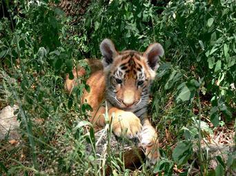 Keywords: tiger cub grass hiding undergrowth orange stripes wild wild animal wildlife play playing cute