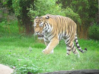 Keywords: tiger grass walking cat wild wildlife predator carnivore zoo striped jungle