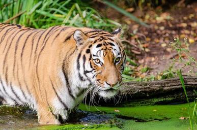 Keywords: tiger looking big cat feline wildlife nature water predator portrait head fur