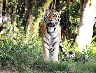 Keywords: tiger siberian wild looking feline carnivore zoo