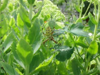 Keywords: tiger spider spider silk band spider garden nature animal insect arachnid animal world creature wasp spider zebraspinne