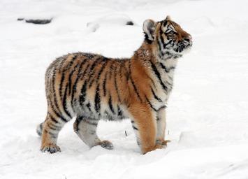 Keywords: tiger tiger cub snow winter looking playful nature big cat feline fur predator zoo stripes young small amur wildlife mammal