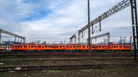 Keywords: tiger train locomotive wagons railway rails pkp peron tracks transport the station vehicles siding