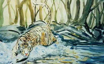 Keywords: tigers cat mammal watercolour painting