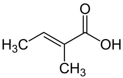 Keywords: Tiglic Acid Structural Formulae V.1.svg en Tiglic_Acid_Structural_Formulae de Tiglinsäure_Strukturformel own Jü 2010-05-19 Tiglic acid