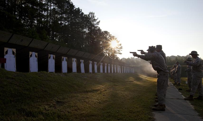 Keywords: 'Til the Shooting's Done (10157855815).jpg Marines fire M9 pistols during the newly introduced Combat Pistol Program at Marine Corps Air Station Cherry Point N C Oct 3 2013 CPP is being implemented throughout the Marine Corps and focuses on pistol marksmanship in combat situations U S Marine Corps photo by Lance Cpl Steve Acuff/Released https //www flickr com/photos/marine_corps/10157855815/ 'Til the Shooting's Done 2013-10-03 08 04 https //www flickr com/people/40927340 N03 Marines from Arlington VA United States PD-USGov United States Marine Corps Official Page https //flickr com/photos/40927340 N03/10157855815 2016-09-03 22 15 38 United States Government Work North Carolina Target practice Weapon training in the United States Marine Corps Pistol shooting M9 pistol