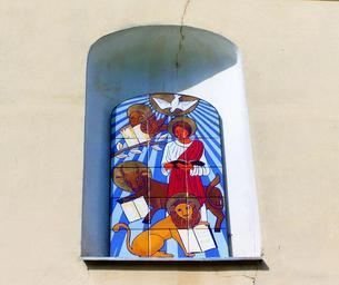 Keywords: tile mosaic church window seat ikon