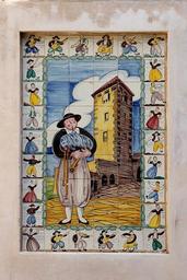 Keywords: tile tiles ceramic pattern decorative wall colorful ornament facade artfully art spain valldemossa mallorca catalina thomás helige legend narrative