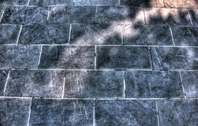 Keywords: tiles blocks floors grounds patterns grey gray sunlight bright sunny day outdoors constructions symmetrical designs symmetry surfaces smooth flat textures solid backgrounds