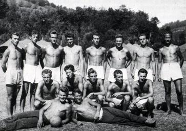 | Keywords: Tim 1950.jpg  sr-ec Екипа из 1950 године Стоје са лева на десно Богојевић п едседник спо тског д уштва Симоновић Иванишевић Јовановић   шевић Л Јовановић В Томић и т ене Бабановић Чуче Буга чић Петковић Павићевић Ванђел и Станковић Леже Пешић и Ивановић 1950-07-10  оног афија ФК И РАКОВИЦА Бошко Пиљегић Custom license marker 2014 09 08 PD-Serbia Uploaded with UploadWizard FK IM Rakovica |