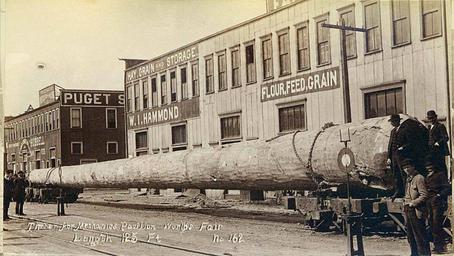 | Keywords: Timber for the construction of the Mechanics Pavilion at the Chicago World's Columbian Exposition, Seattle, Washington, ca 1893 (LAROCHE 166).jpeg Photograph Creator Frank La Roche Caption on image Timber for Mechanics Pavilion World's Fair Length 125 ft Compare with Boyd and Braas 162 Timber is loaded on railroad trucks depicted on Western Ave corner of Marion St Subjects LCTGM Logs--Washington State --Seattle; Buildings--Washington State --Seattle Subjects LCSH W I Hammond depicted place Seattle Washington ca 1893 Institution University of Washington UWASH-LAROCHE-source accession number laroche 166 PD-old-auto-1923 1936 Information field Order Number LAR034 Timber Mechanics Pavilion of the World's Columbian Exposition Rail vehicles of the United States Former buildings of Seattle Western Avenue Seattle Marion Street Seattle Seattle Washington in the 1890s Central Waterfront Seattle Washington Black and white photographs |