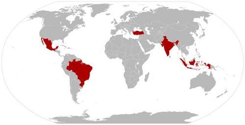 | Keywords: TIMBI.svg en The TIMBI countries Turkey India Mexico Brazil and Indonesia; are a concept proposed to replace the concept of BRICs due to a slowdown in economic and population growth in Russia and China Self based on File BlankMap-World6 svg User Quintucket based on work by User Canuckguy and others 2013-06-16 Economic maps of the world Membership maps of the world Blank maps showing current or potential superpowers | ||||