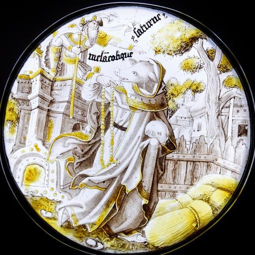 Keywords: Time banishing Melancholy VandA C.1380-1924.jpg unknown en An old man with a staff identified as Saturn drives away a monk with a pig's head fr Un vieillard armé d'un bâton représentant Saturne chasse un moine à tête de cochon ca 1530 glass grisaille silver stain cm 22 3 MELANCOLIQUE SATURNE fr MELANCHOLIC SATURN Institution Victoria and Albert Museum Medieval and Renaissance room 62 case 1 object history place of creation Flanders credit line ProvenanceEvent purchase Murray Bequest accession number C 1380-1924 Marie-Lan Nguyen 2012 PD-old-90 other versions 1530s works Allegories of time Allegories of Melancholia Renaissance objects in the Victoria Albert Museum Stained glass in the Victoria and Albert Museum Monks on stained glass windows Pig heads in art Anthropomorphic pigs Saturnus deus Quality images by Jastrow Quality images of stained glass QualityImage