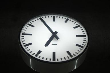 Keywords: time clock evening black white night day seven six number dial second minute symbol ticking watch train