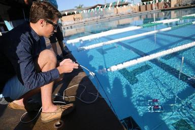| Keywords: Timed maneuvering challenge 150128-N-ZZ999-079.jpg en William O ™Brien a high school senior at Coronado High School controls an underwater Remote Operated Vehicle during a timed maneuvering challenge to pick up hanging rings and move them to a basket as part of the ONR Sea Perch challenge The Office of Naval Research ™s Sea Perch Program is an innovative underwater robotics program that equips teachers and students with the resources they need to build an underwater ROV in an in-school or out-of-school setting Students build the ROV from a kit comprised of low-cost easily accessible parts following a curriculum that teaches basic engineering and science concepts with a marine engineering theme 2015-01-30 ROV https //www dvidshub net/image/1749016 150128-N-ZZ999-079 2015-02-02 23 45 SAN DIEGO CA US PD-USGov-Military-Navy Office of Naval Research Images from DoD uploaded by Fæ |