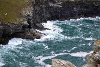 Keywords: tintagel castle king arthur sea coast cliff waves breakers coastline rocky coast landscape