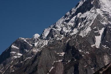 | Keywords: outdoor ridge arete landscape cliff crag rock rock formation mountainside mountain That's the tip of Shivling visible over Bhrigupanth's shoulder, a short while after Chirbasa. Quite a few have argued that you do not see Shivling until you get really close to Bhojbasa, but here is the glimpse. That's the tip of Shivling visible over Bhrigupanth's shoulder, a short while after Chirbasa. Quite a few have argued that you do not see Shivling until you get really close to Bhojbasa, but here is the glimpse. |