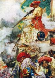 | Keywords: Tipu Sultan, Indian warrior Emperor of Mysore.gif Tipu Sultan firing at his adversaries during the siege of Seringapatam 1791 The Battle of Carigat was fought May 13 1791 between British and Indian troops led by Tipu Sultan In the 1790s three wars against British rule in India were fought by Hyder Ali and his son Tipu 1750-1799 Muslim ruler of the Kingdom of Mysore in the South of India They were sophisticated in the use of weapons canons muskets and unprecedented iron-cased rockets Surprisingly one of the world's largest factories of those days was located in Ichapur near Calcutta In busy years like those of the Mysore Wars 2 000 and more skilled labourers were engaged in the manufacture of gunpowder Their behaviour in the field of industrial relations is even more surprising they knew how to raise their wages through collective action and introduced a pension scheme for victims of work accidents in 1783 The workforce consisted of migrants hailing from as far away as Chittagong in the East to Bishnupur and beyond in the West Jan Lucassen goes into the details of this story in 'Working at the Ichapur Gunpowder Factory in the 1790s http //socialhistory org/en/today/05-13/gunpowder-manufacture 1 Tipu Sultan in art PD-old-100 |