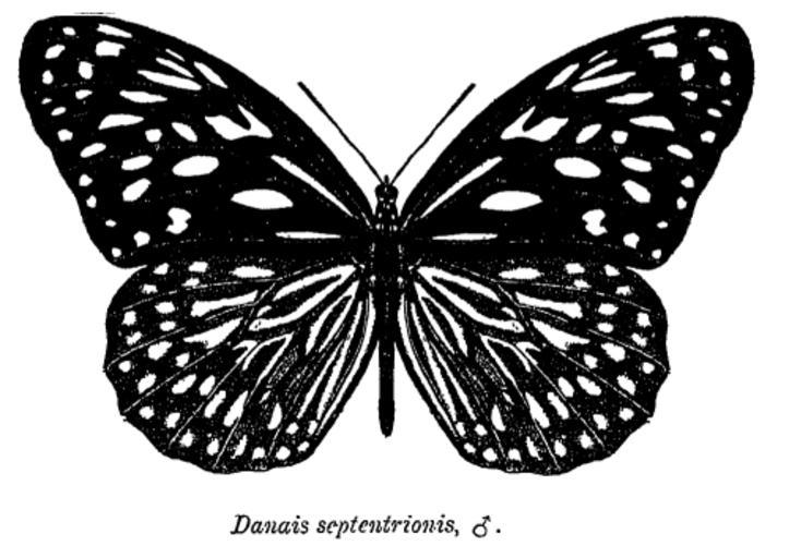 Keywords: Tirumala septentrionalis ctb.png Male Danais septentrionis Tirumala septentrionis <small> Butler 1874 </small> Dark Blue Tiger Fauna of British India - Butterflies Vol 1 1905 C T Bingham PD-old Tirumala septentrionis Bingham's Fauna of British India Butterflies |