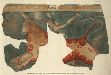 | Keywords: Tiryns Tafel XIII.jpg de Wandmalerei im Palaste von Tiryns einen Mann darstellend der auf einem Stier tanzt http //digi ub uni-heidelberg de/diglit/schliemann1886/0571 digi ub uni-heidelberg de Heinrich Schliemann 6 January 1822 “ 26 December 1890 Before 1890 PD-old Heinrich Schliemann Frescoes from Tiryns |
